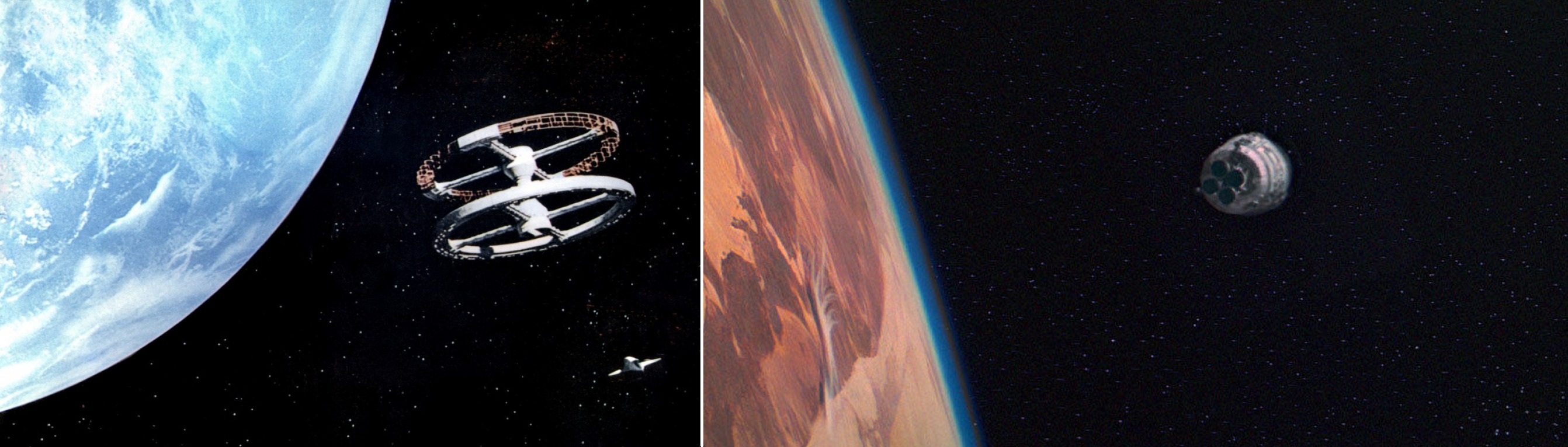 Au-delà de tout ceci encore, Star Wars IV est également une expérience visuelle des plus intéressantes. Si l’on ne peut que sentir l’influence des maîtres que George Lucas admire, il serait faux de dire que ce premier opus ne repose que sur cela. Bien évidemment, on sent que 2001 : L’Odyssée de l’Espace de Stanley Kubrick est passé par là ou que Les Sept Samouraïs et La Forteresse Cachée d’Akira Kurosawa ne sont pas passés inaperçus aux yeux du jeune cinéaste. En fait, chaque plan spatial d’un vaisseau ou d’une planète pourrait être pris comme un écho à 2001 par exemple. Dans leur construction, leur déroulement ou leur enchaînement… Fort heureusement, et comme pour tout le reste des références sur lesquelles Lucas s’est ici appuyé, il va plus loin. On a beau savoir où il a puisé son inspiration, les batailles spatiales sont telles qu’on ne les a jamais vues jusqu’alors, leur réussite reposant pour beaucoup sur l’avancée en termes d’effets spéciaux dont a bénéficié (qu’a permis ?) ce film !