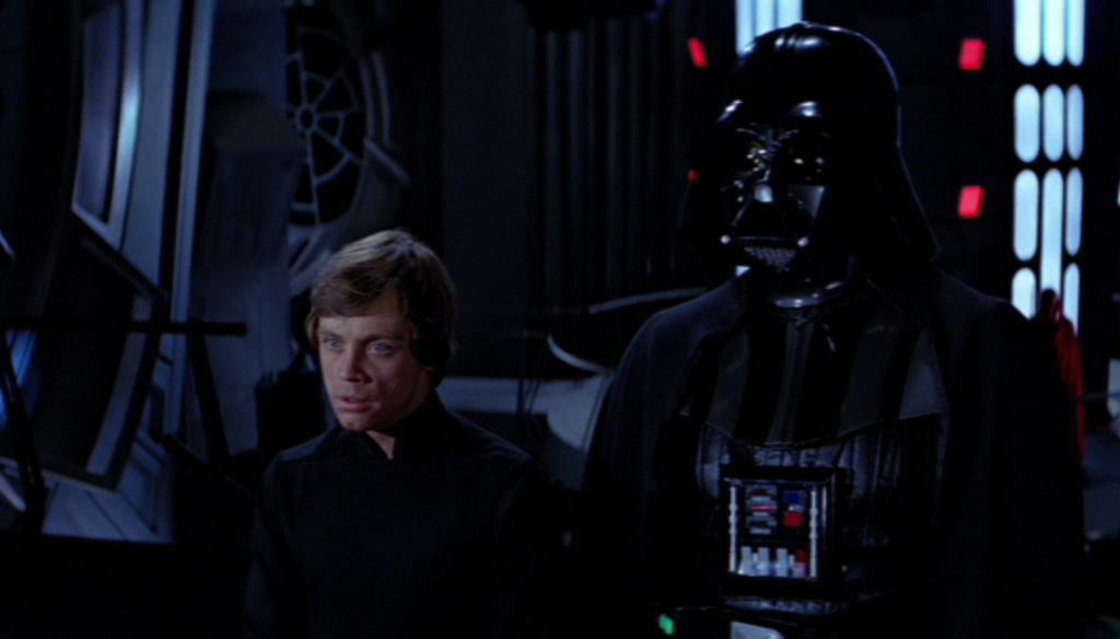 Découvrant progressivement la Force, Luke en découvre également les deux côtés, lesquels lui sont intimement liés puisqu’il se veut être un défenseur du côté lumineux tandis qu’il est irrémédiablement rattaché au côté obscur par sa filiation avec Dark Vador. Une filiation qui a conduit Luke a connaître l’attrait du côté obscur, dans une mesure raisonnable cela étant puisqu’il n’a pas pour autant considéré le rejoindre, lors du fameux passage de la caverne sur Dagobah. Tout ceci donnera en tous cas lieu à de très bonnes séquences face à l’Empereur, tant sur le fond que sur la forme. Comment oublier ce duel final entre Skywalker et Vador ou encore l’entrée en action d’un Empereur qui se décide à prouver que c’est bien lui le patron ?
