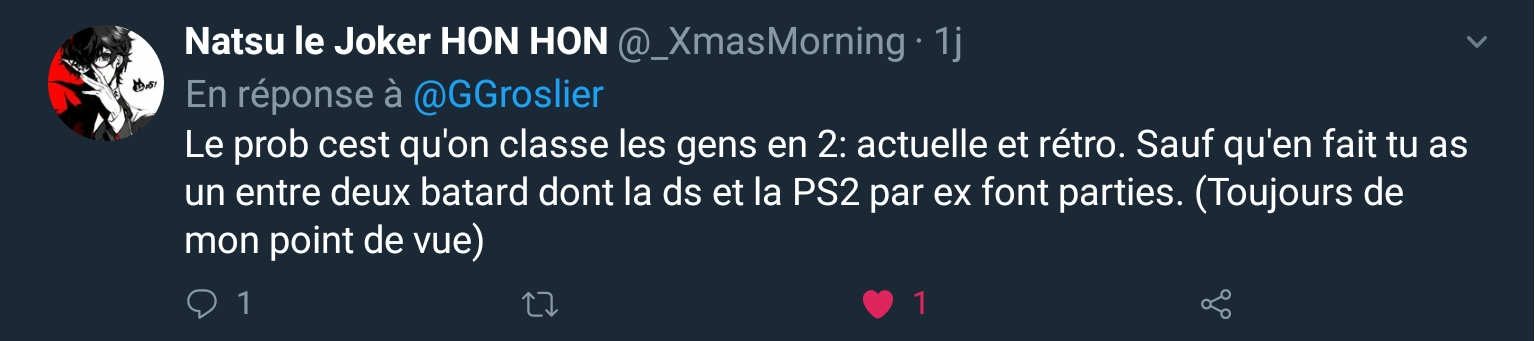 Le problème c’est que l’on classe les générations en deux : actuelle et rétro. Il y a en fait un entre-deux bâtard dont font partie la DS et la PS2 par exemple. La PS1 commence doucement à être acceptée parmi les consoles rétro et ça sera bientôt le tour de la PS2.