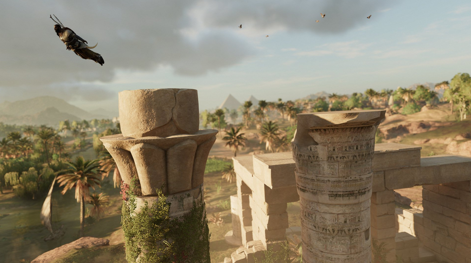 Cette compromission de ce qui devait dès le départ faire la recette des jeux de cette franchise, on la retrouve aussi dans la façon dont nous sommes ici amenés à jouer. Car si les mécaniques d’Origins sont dans l’ensemble convenables et fonctionnent globalement bien, il n’en demeure pas moins qu’on s’est là aussi assez éloigné des enjeux d’il y a 11 ans. Bayek, contrairement à Altaïr, Ezio ou même Connor, est bien moins amené à évoluer avec discrétion et, surtout, tout en acrobaties et autres sauts de bâtiment en bâtiment ou d’arbre en arbre.