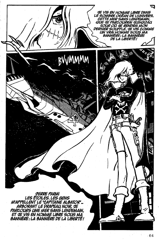 Je crois au final que toute la série doit être lue avec du recul. Il convient de relativiser les choses et de comprendre que rien n’est tout noir ou tout blanc dans l’univers de Capitaine Albator. Ce n’est pas un manga pour enfants, au contraire, et les quelques uns de la « génération Club Dorothée » qui crucifient aujourd’hui ce corsaire devraient, je pense, avoir en tête que l’Albator de l’anime de leur enfance et celui du manga originel se ressemblent, certes, mais diffèrent néanmoins sur bien des points.