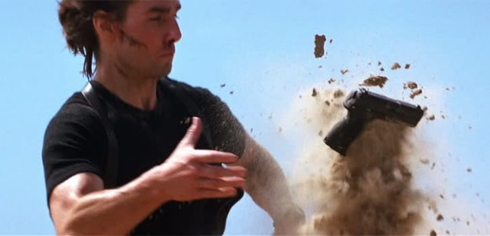 Où est passée l’ambiance paranoïaque et inquiétante du premier volet ? Où est la mise en scène qui appuie cette ambiance lourde ? En prenant le relais derrière la caméra à l’aube des années 2000, John Woo impose son style, sa patte artistique propre et décide de totalement transformer l’œuvre à laquelle il s’attaque et ses codes, qu’ils soient relatifs au fond ou à la forme.