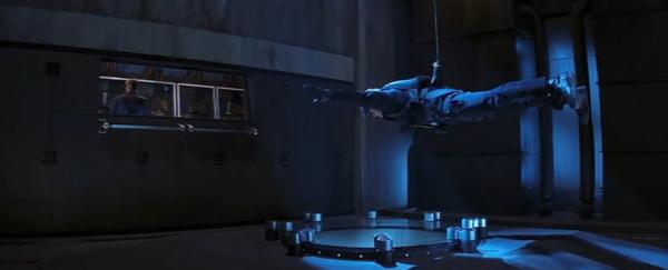L’exemple le plus flagrant demeure dans la gestion des silences en faveur du suspense ou tout du moins de la tension. Comme je le disais le mois dernier, De Palma a réussi un grand coup dans Mission: Impossible premier du nom avec cette fameuse séquence au siège de la CIA, laquelle se déroule dans un silence absolu, non seulement justifié par le scénario mais également par l’intention du réalisateur. D’entrée de jeu, M:I2 pouvait réaliser quelque chose du même genre. En introduction du film en effet, après la mise en place des principaux éléments de l’intrigue, nous retrouvons Ethan Hunt en pleine séance d’escalade de haute voltige.