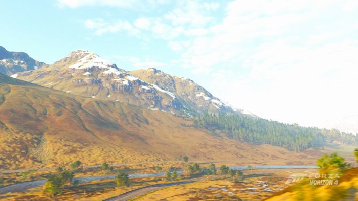 Mais, pour être tout à fait honnête, Forza Horizon, ce n’est pas uniquement le plaisir du pilotage au sens propre du terme. C’est aussi celui de la conduite, comme on conduirait le dimanche pour aller se promener. Ingrédient essentiel de la recette FH, le simple plaisir de rouler est indispensable pour que la sauce prenne dans un jeu de cette licence, lequel se veut être autre chose qu’un « simple » jeu de courses décomplexé et fun. Forza Horizon c’est aussi le plaisir d’évoluer dans un environnement qui se veut être un régal pour les mirettes, un écrin dans lequel on se plait à avancer et se balader au volant de son véhicule préféré. FH4 se pare alors, comme ses prédécesseurs, d’atours esthétiques qu’on ne peut que souligner et qui font le succès de chaque épisode. Conquis par l’arrière-pays du Sud de la France, ravis par les couchers de soleil sur les plages australiennes, je suis désormais enchanté par cette Grande-Bretagne qui s’offre à moi, variée dans ses terrains et mouvante dans ses saisons. Si l’on poussait l’idée suffisamment loin, on pourrait presque parler d’une expérience très romantique, au sens littéraire du terme, celui qui s’enthousiasme d’une nature a priori indomptable mais dans laquelle on peut trouver quelque chose qui marque.