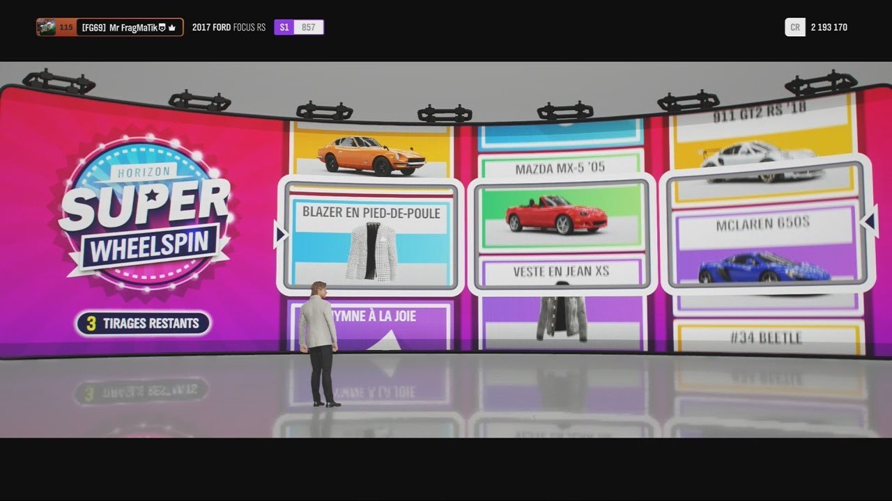 C’est dans l’esprit de la licence d’ailleurs, cette idée de satisfaction instantanée. Car les Forza Horizon ont ce côté ultra gratifiant, où il est bien facile d’être reconnu et récompensé pour ses prouesses de pilote. Trop peut-être même, les tirages pour obtenir des cadeaux (crédits, divers accessoires, voitures…) s’enchaînant très vite tant il est facile de les débloquer. Le garage se remplit presque tout seul finalement, avec des voitures qu’on n’a même pas le temps d’essayer tant elles semblent pleuvoir sans discontinuer ! On notera à ce sujet l’arrivée des super-tirages permettant d’obtenir trois cadeaux simultanément. Et puisqu’on en parle, on ajoutera que parmi ces cadeaux se glissent désormais des tenues et autres accessoires pour personnaliser son avatar. Car oui, vous pouvez désormais choisir la tenue de votre personnage, bien que cela n’apporte pas grand-chose d’autre que le plaisir de peaufiner son apparence de temps en temps, ou de le vêtir en fonction des saisons… Ceci pourra se faire notamment dans une des maisons que vous aurez préalablement achetées avec vos crédits durement gagnés en course, ce qui constitue une énième nouveauté de ce titre. Au-delà du simple ajout sympathique d’une façon de dépenser ses sous virtuels, cette nouvelle option permet également de se créer des points sur l’ensemble de la map à partir desquels il sera possible de reprendre lors de la prochaine partie, à condition d’avoir sélectionné la maison voulue comme domicile. Notez que le château d’Edimbourg est également sur le marché, pour une bonne quinzaine de millions de crédits si je ne m’abuse.