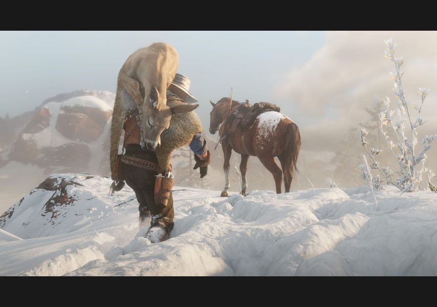 Concernant le gameplay ensuite, c’est déjà un autre sujet. Loin d’être le plus immonde des systèmes de jeu qu’on ait connus, celui de RDR 2 ne manque pas de diviser, son principal « problème » étant à mon sens son postulat de départ : le réalisme. En voulant donner aux joueurs et joueuses une expérience qui se fasse aussi naturelle et réaliste que possible, il appartenait aux développeurs d’insérer dans le gameplay autant d’éléments que possible, allant ainsi du simple fait de choisir quelle arme emporter avec soi et laisser sur la selle de son cheval à la préparation d’aliments et de matériel en passant enfin par la gestion (sommaire) du camp et diverses choses qui deviendront finalement très accessoires (comme le fait de prendre un bain par exemple…).