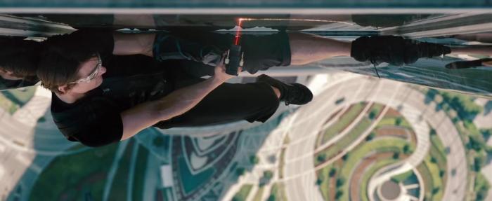 Ce que je vais dire là ne vise en aucun cas à pointer du doigt ces scènes souvent époustouflantes, chacune à leur manière, mais en regardant de nouveau Protocole Fantôme, cette question m’est venue à l’esprit : ces passages sont devenus des indispensables de la licence mais le sont-ils réellement ? D’autant qu’au regard du ton général des films, relativement sérieux et peut-être pas réalistes mais pas trop loin de l’être non plus, ces séquences à (très) grand spectacle pourraient largement dénoter tant elles sont « grosses ». Et si la question me vient devant M:I4, ce n’est pas pour rien : l’exploit du Burj Khalifa franchit un nouveau palier dans la grandiloquence de ces passages. Je sais que certain(e)s critiquent parfois Mission: Impossible justement pour ce genre de choses et, aussi objectivement que possible, je crois que la saga pourrait s’en passer. « Pourrait », ai-je bien dit, mais mes goûts personnels font que je ne veux pas pour autant assister à la disparition de ces passages-clés.