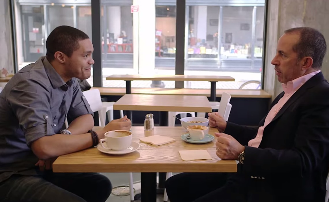 Et tout aussi sûrement, c’est une réflexion qui se construit, tant sur l’humour donc que sur la célébrité et la conjonction des deux. Obama encore une fois permettra de voir comment l’humour permet une autre approche de la politique, comment cela peut désacraliser certaines situations. L’excellent Trevor Noah quant à lui aura tout le loisir de parler de la façon dont l’humour peut être une formidable outil face aux situations les plus difficiles comme la discrimination. L’anecdote sur son grand-père dans l’Afrique du Sud de l’apartheid vaut le détour ! Et bien vite on se rend compte qu’on n’est pas juste là pour voir deux comédiens se tailler le bout de gras autour d’un tasse de café. Chacun et chacune prend la chose relativement au sérieux et si l’on rit beaucoup, on ne manque pas pour autant de voir tout ce petit monde réussir sous la houlette de Jerry Seinfeld à développer un propos très intéressant sur la condition-même d’humoriste et sa place dans la société. Nombreux sont ceux par exemple à évoquer la façon dont il conjugue vie publique et vie privée et comment les deux s’entrechoquent souvent. Toute cette réflexion induite par des conversations entre passionnés amène Comedians in Cars à dépasser encore une fois son statut de « talk en extérieur ». Mieux encore, Seinfeld a l’art de réaliser cet exercice sans en faire quelque chose de pompeux, lourd ou prétentieux. Car si l’émission permet tout le développement de ce propos, elle n’en oublie pour autant pas ses fondamentaux et demeure un divertissement léger et drôle, le genre que l’on regarde comme on prendrait un café justement : pour se poser et se détendre un peu.