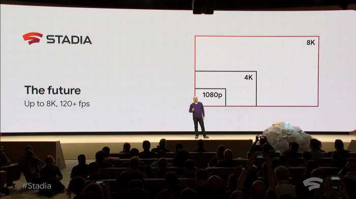 Dans le domaine des promesses en matière de puissance et autre gros fps, Google avance avec des ambitions énormes. La principale, c’est évidemment celle d’une définition toujours plus grande, Stadia devant tourner avec une puissance de pas moins de 10,7 teraflops. Un chiffre qui ne dira peut-être rien à celles et ceux qui ne connaissent pas trop ce vocabulaire (j’en fait partie, j’ai farfouillé pour comprendre de quoi on me parlait) mais, tout ce que je peux vous dire, c’est que ça envoie sévère 10,7 teraflops. C’est suffisant pour balancer du 4K HDR à 60fps a priori et, si on se concentre assez, du 8K dans l’avenir. Pour vous insérer tout cela dans un ordre de grandeur que Google ne s’est pas privé de donner, histoire d’afficher ses petits camarades, la Xbox One X (que Microsoft vend comme la console la plus puissante de touts les temps, etc…) ne tourne « qu’à » 6 teraflops et sa concurrente directe la PS4 Pro à 4,2 teraflops.