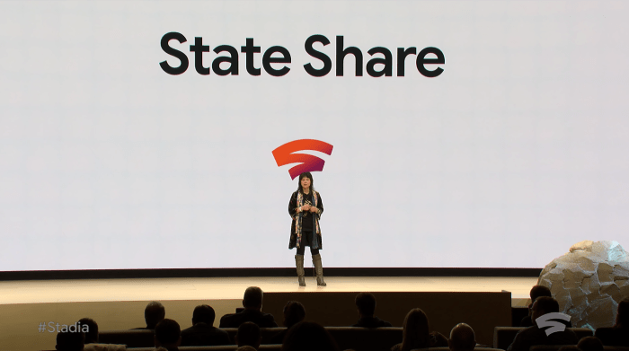 Toujours dans cette dimension multi, Stadia devrait disposer de deux fonctionnalités majeures. D’un côté, nous avons le Crowd Play. Son nom donne une indication de ses intentions : faire participer le public. Pour cela, cette fonction donnera l’opportunité aux personnes suivant une diffusion sur YouTube (faite grâce au bouton Capture de la manette donc) de rejoindre la partie qu’ils étaient en train de regarder pour y jouer, tout bonnement ! Un procédé qui rappelle d’ailleurs le Share Play mis en place sur PS4. Et de l’autre côté, c’est le State Share qui est mis en lumière lors de cette présentation et cette fonction est intéressante dans un sens puisqu’elle permet de sauvegarder sa partie à un instant donné, d’y établir une sorte de checkpoint que le joueur pourra partager avec un(e) autre via un lien URL classique. La personne qui recevra le lien pourra donc entamer le jeu à partir de ce moment donné de la progression, effectuant ainsi son propre parcours sur une sorte de copie de la sauvegarde du joueur initial.