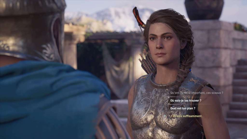 Mais, paradoxalement, Odyssey n’a d’ailleurs peut-être pas grand-chose d’un Assassin’s Creed au final, hormis dans ce que je viens de mentionner. Pas d’Assassins (le scénario ne fait même pas clairement référence à une future formation de la confrérie, contrairement à Origins), pas de luttes intestines donc entre ces derniers et leurs ennemis de toujours (même si ceux-ci sont préfigurés par le culte), pas de lame secrète (pourtant emblématique de la série), gameplay qui s’en dissocie donc un peu et, avec tout cela, un personnage central qui s’éloigne forcément de ses prédécesseurs. Tout ce qui rattache clairement Odyssey à la marque Assassin’s Creed, c’est son game-design (mais il pourrait être appliqué à n’importe quel autre jeu, avec un peu d’imagination) et les quelques échos qui demeurent de la méta-histoire et de la mythologie interne de la licence. Celle-ci refait d’ailleurs surface grâce à la quête des artefacts de l’Atlantide dont je ne dirai rien de plus si ce n’est qu’elle m’a bien plus, jusqu’au moment où le jeu a freezé à plusieurs reprises sur l’ultime combat que j’avais à mener dans cette optique.