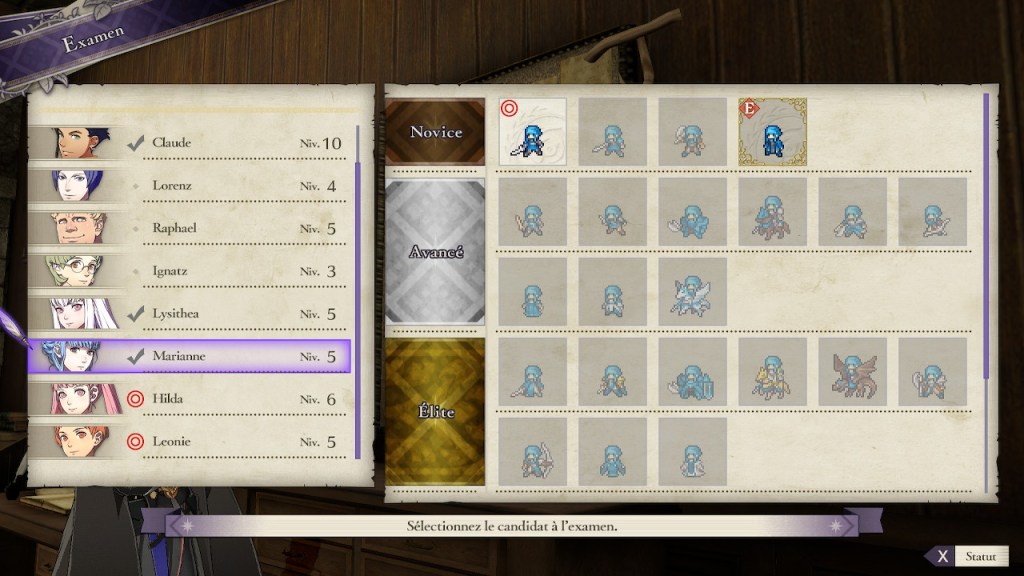 Face à cela, bien vite, on s’approprie ce système mensuel pour y caler une routine qui permette de répondre aux nécessités du jeu sans forcément perdre de temps avec d’autres choses plus secondaires. Deux batailles par mois (avant celle scénarisée en toute fin), deux journées de temps libre pour la motivation et hop, on est partis. Tant et si bien que si ce n’est pour recruter, on se retrouve alors à se contenter de former ses propres élèves pour leur faire gagner des niveaux et changer de classe. Le temps libre est alors utilisé pour maintenir leur motivation au top.