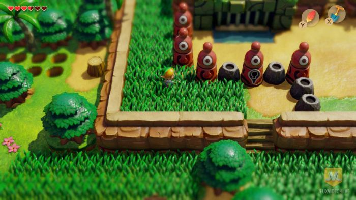 Oui, on s’en fout. Cessons là cette vaine nécessité de mettre des mots sur tout, tout le temps. Je pense à Neights en écrivant ces lignes car je connais bien son avis sur ce besoin excessif de tout nommer précisément de nos jours. Là n’est pas la question enfin ! Le Link’s Awakening de 2019, avant d’être quoi que ce soit d’autre, n’est ni plus ni moins que la même chose que celui de 1993 : un jeu vidéo. Prenons-le comme tel et sachons apprécier chacune de ses particularités, de ses idées et de ses tentatives. On pourrait digresser des heures durant sur le comparo à effectuer entre cette version et son original mais est-ce bien utile ? A-t-on besoin de juger un jeu à l’aune des modifications qu’il apporte ou non ? Enfin, est-il réellement pertinent de toujours tout comparer pour savoir ce qui est mieux que l’autre ? Non, il est certainement bien plus sain d’évacuer de nos esprits déjà bien assez chargés ce genre de questionnements.