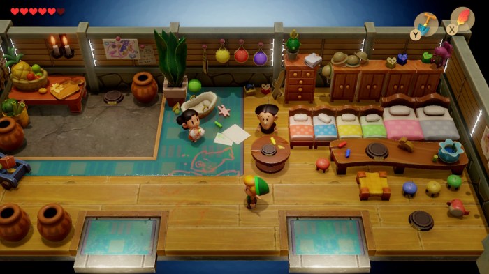 Aérer l’esprit, c’est d’ailleurs une des choses que ce Link’s Awakening fait très bien. Porté par son apparence joviale et colorée, le jeu nous plonge d’emblée dans un univers doux et réjouissant, chaleureux, où tout appelle à la rêverie.