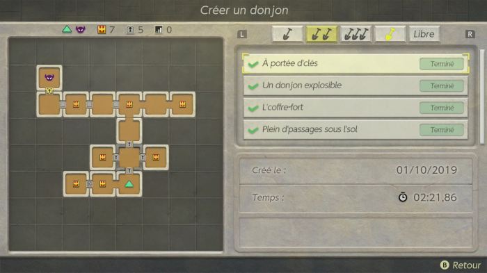 Cette mouture 2019 apporte néanmoins – et très logiquement – son petit lot de changements. Je vais tout de suite passer sur l’ajout de ce mode de création de donjons, réelle nouveauté de ce remake. L’on nous y propose, en compagnie d’Igor le fossoyeur, de fabriquer nos propres petits donjons à partir de petites tuiles à collectionner et agencer selon une certaine logique. L’objectif de tout cela sera de récupérer divers items utiles à notre progression. Utiles mais néanmoins facultatifs puisqu’il est tout à fait possible de terminer le jeu sans s’intéresser à ce mode créatif, ce qui fut mon cas. Un système de partage via les Amiibo est également proposé afin de récupérer les donjons des copains et copines tout en leur envoyer les nôtres. Un petit ajout certes sympathique mais qu’on oubliera relativement vite au final, sauf si l’on est vraiment du genre à saisir à pleines mains la moindre possibilité de création qui nous est donnée dans un jeu.