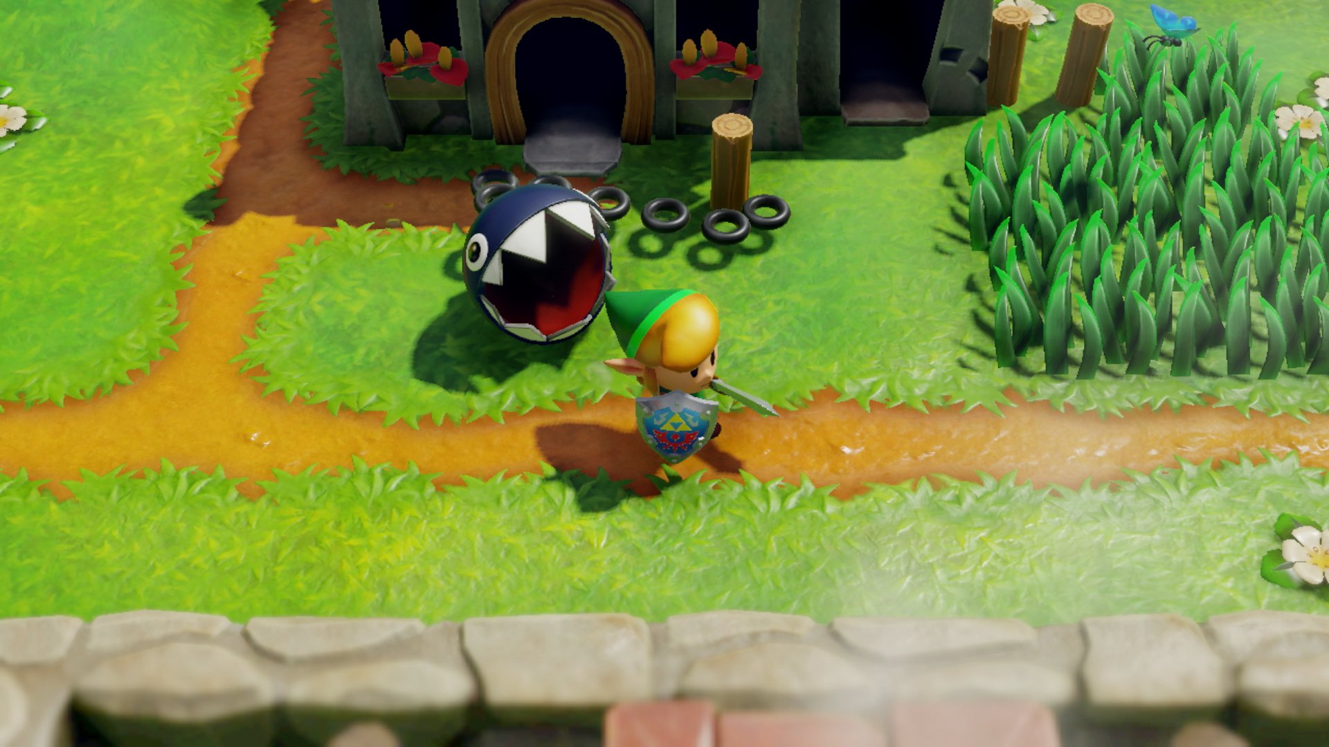 Hormis les éléments que je viens d’évoquer, on constate finalement à mesure que l’on avance dans le jeu que ce remake ne bouleverse pas outre mesure le modèle établi par son original. En fait, quiconque aurait déjà joué à Link’s Awakening sur Game Boy (Color ou non) se retrouverait ici dans une situation où, s’il connaissait bien le jeu, n’aurait aucune difficulté à s’y retrouver dans cette nouvelle mouture. On en vient donc petit à petit à se dire que le seul véritable changement apporté par ce remake, c’est la refonte graphique totale du titre. Cette édition 2019 de Link’s Awakening se pare donc d’allures de diorama excessivement mignon, tout en rondeurs qui caressent l’œil et subjuguent le regard. Une charte esthétique à la douceur indéniable qui tranche tant qu’elle divisera forcément le public, comme aura pu le faire The Wind Waker en son temps.