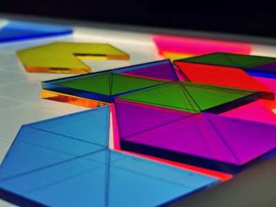 Au milieu de tous ces jeux vidéo, il y a tout de même eu une petite incartade dans le monde des jeux de plateaux. Car oui, l’IndieCade, c’est aussi ça. Malheureusement, le temps n’étant pas spécialement extensible, je n’ai pu jouer qu’à un seul des jeux proposés. Heureusement en revanche, c’était Kroma. Là encore, la simplicité est globalement de mise. Kroma est un jeu qui se joue à trois (je pense qu’à deux ça le fait aussi) et dans lequel chacun des joueurs se voit attribuer une couleur : orange, violet et vert. L’objectif est alors simple : sur un plateau lumineux triangulaire : placer et empiler de petites tuiles jaunes, rouges et bleues de diverses formes afin de créer les couleurs secondaires que je viens de mentionner. Vous l’aurez vite compris, à la fin c’est celui ou celle qui a le plus recouvert le plateau de sa couleur qui gagne.
