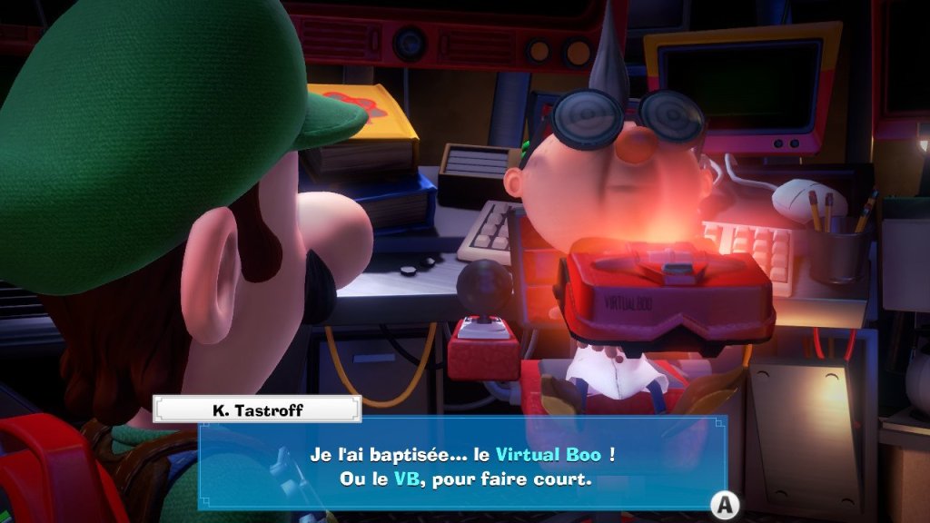 Après la Game Boy puis la DS, c’est au tour de l’inattendu Virtual Boy d’inspirer le matériel de communication de Luigi et Tastroff avec le Virtual Boo. Le professeur l’utilisera hélas beaucoup pour nous donner des indications parfois évidentes et nous priver du plaisir de la réflexion.