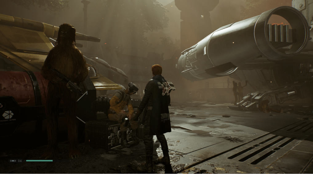 Esthétiquement, je n’ai pas grand-chose à lui reprocher. La direction artistique a certes un travail « facilité » par un long héritage visuel induit par le pan cinématographique de la licence mais également tous les jeux précédentes mais il ne faut pas pour autant en minimiser les qualités. Fallen Order réussit en effet à se construire un univers riche de moult détails tout en respectant les standards qui sont imposés consciemment ou non par la saga. Ce travail de conjugaison entre l’inédit et l’hérité, il se résumerait facilement en évoquant brièvement le fait que Kashyyyk (que nous avions découverte dans l’épisode III au cinéma) est aussi réussie que Zeffo par exemple. Cela peut sembler bateau mais lorsque l’on tâche de donner vie à un jeu se déroulant dans un univers déjà aussi riche et précis que celui de Star Wars, il est important d’offrir de la cohérence, de faire en sorte que rien dans ce que l’on proposera d’inédit ne jure avec ce qui était déjà établi. Sur ce plant-là, Fallen Order n’a pas à rougir et ce constat vaut non seulement pour les planètes sur lesquelles il propose de s’aventurer mais aussi pour des choses qui sont plus petites, parfois des détails. Ainsi en va-t-il par exemple du droïde BD-1 qui nous accompagne tout du long de l’épopée ou du vaisseau de Greez que nous emprunteront bien des fois pour voyager de planète en planète. L’idée n’est pas ici de vous citer ce qui est nouveau et ce qui ne l’est pas mais plus de vous affirmer qu’à mon sens, les équipes artistiques ont fait du très bon boulot sur ce jeu afin qu’il s’inscrive très naturellement dans la licence dont il dépend.
