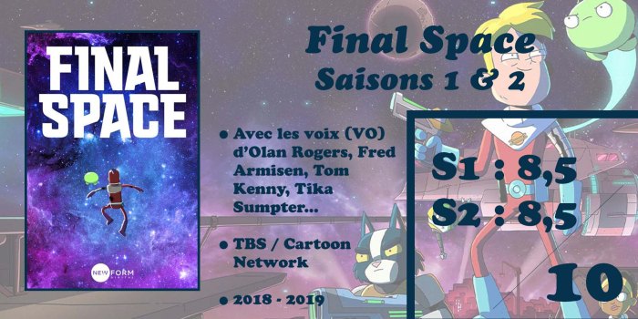 Je ne peux donc que vous recommander Final Space. Loin d’être une banale série d’animation de plus, cette production brille sous bien des aspects. De leur palette de personnages à sa distribution en passant par la richesse de leur univers, la finesse de leur récit et l’excellence de leur humour décapant, ces deux premières saisons sont de véritables réussites, excellentes surprises qu’on n’a pas vues arriver. Vraiment, il faut que vous regardiez cette série, elle vaut cent fois le détour !