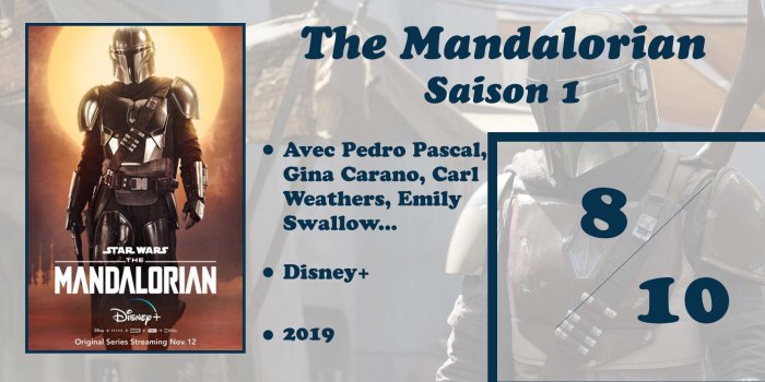 J’en suis donc le premier ravi : The Mandalorian est une bien belle surprise. Là où j’attendais une série qui aurait plus fait office de VRP pour Disney+ qu’autre chose, je me suis retrouvé avec une saison riche et bien menée, portée en grande partie par la très bonne écriture de chacun de ses épisodes (à peu de choses près). Jon Favreau a su livrer un format prenant et enthousiasmant, assez éloigné des standards actuels des « grosses » séries et qui prouve formidablement bien qu’il ne faut pas nécessairement faire dans la grandiloquence pour offrir quelque chose de captivant et même touchant pour le public. The Mandalorian se trouve alors guidée par cette vision des choses et arrive sans aucun souci à conduire son fil principal tout du long de la saison mais en laissant la part belle dans chaque chapitre aux intrigues et personnages secondaires, essentiels au développement de l’ensemble et de son personnage principal. On n’aura pas eu Boba Fett mais ce Mandalorien là n’a rien à lui envier.