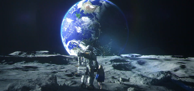 Mais passons… Pragmata s’annonce donc, comme bon nombre d’autres jeux de cette longue conférence, à travers un trailer qui ne révélera rien du gameplay. Mais pour le coup, difficile de lui jeter la pierre : le jeu n’est attendu que pour 2022 ! Autant dire une éternité (j’exagère à peine) au cours de laquelle le plus gros du travail reste sans doute encore à faire pour Capcom. En l’état, nous n’apprenons finalement que peu de choses sur ce futur titre mais c’est suffisant pour titiller la curiosité de certains, dont moi. Le jeu prend place dans un univers SF/futuriste (post apo ?) et c’est bien à peu près tout ce que l’on peut en dire. La vidéo, qui nous met d’abord en scène deux personnages (l’homme en scaphandre et une petite fille) en ville puis sur la Lune après une succession d’événements qui permettent de bien mettre l’accent sur les effets visuels, se veut finalement plutôt cryptique et énigmatique. Impossible en l’état de déterminer à quoi ressemblera le jeu et seule l’hypothèse est de rigueur. Plusieurs questions se posent également concernant cette jeune fille qui semble dotée de certaines facultés et la relation qu’elle entretiendra avec celui qui semble quant à lui être le personnage que le joueur incarnera. Sont-ce là les Joel et Ellie ou Sam et BB de Capcom ? Impossible de le savoir mais le fait est que Pragmata a suscité en moi une véritable curiosité.