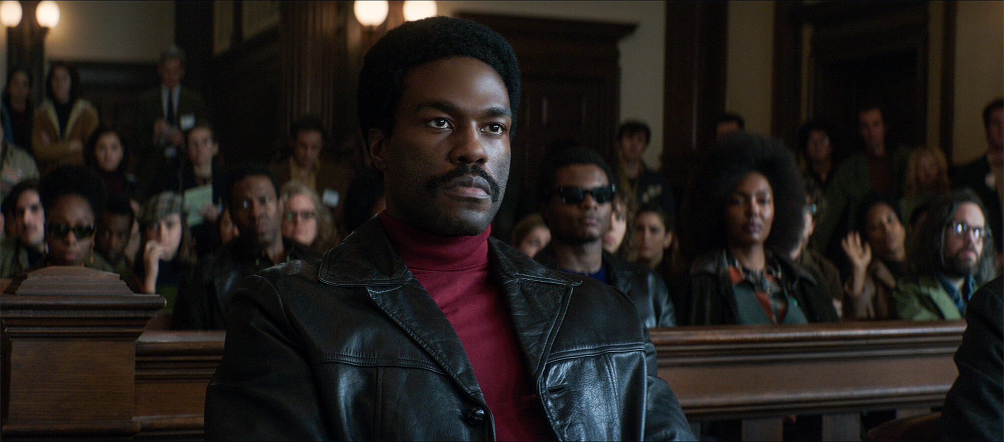 Si le contexte de la Guerre du Vietnam n’est évidemment (et bien heureusement) plus d’actualité aujourd’hui (et encore, ça aurait presque pu être le cas il y a 10 ou 20 ans avec les guerres successives en Afghanistan et en Irak), la question de la contestation politique et d’une véritable volonté de renouvellement des modèles de société telle que portée dans les années 1960 trouve une résonnance considérable dans ce que nous observons en Amérique depuis des mois, sinon des années. Il va aussi sans dire que la question du traitement de Bobby Seale évoque sans détours (mais pas sans finesse) celle du mouvement Black Lives Matter, un rapprochement qui s’observe d’ailleurs très furtivement dans la simple réplique où l’avocat William Kunstler demande à Bobby Seale – pour des raisons que je tairai ici – s’il arrive à respirer, évocation évidente (sans que je puisse affirmer qu’elle est volontaire ou non) du tristement célèbre « I can’t breathe » (« Je ne peux pas respirer ») de George Floyd lors de son arrestation fatale il y a quelques mois.