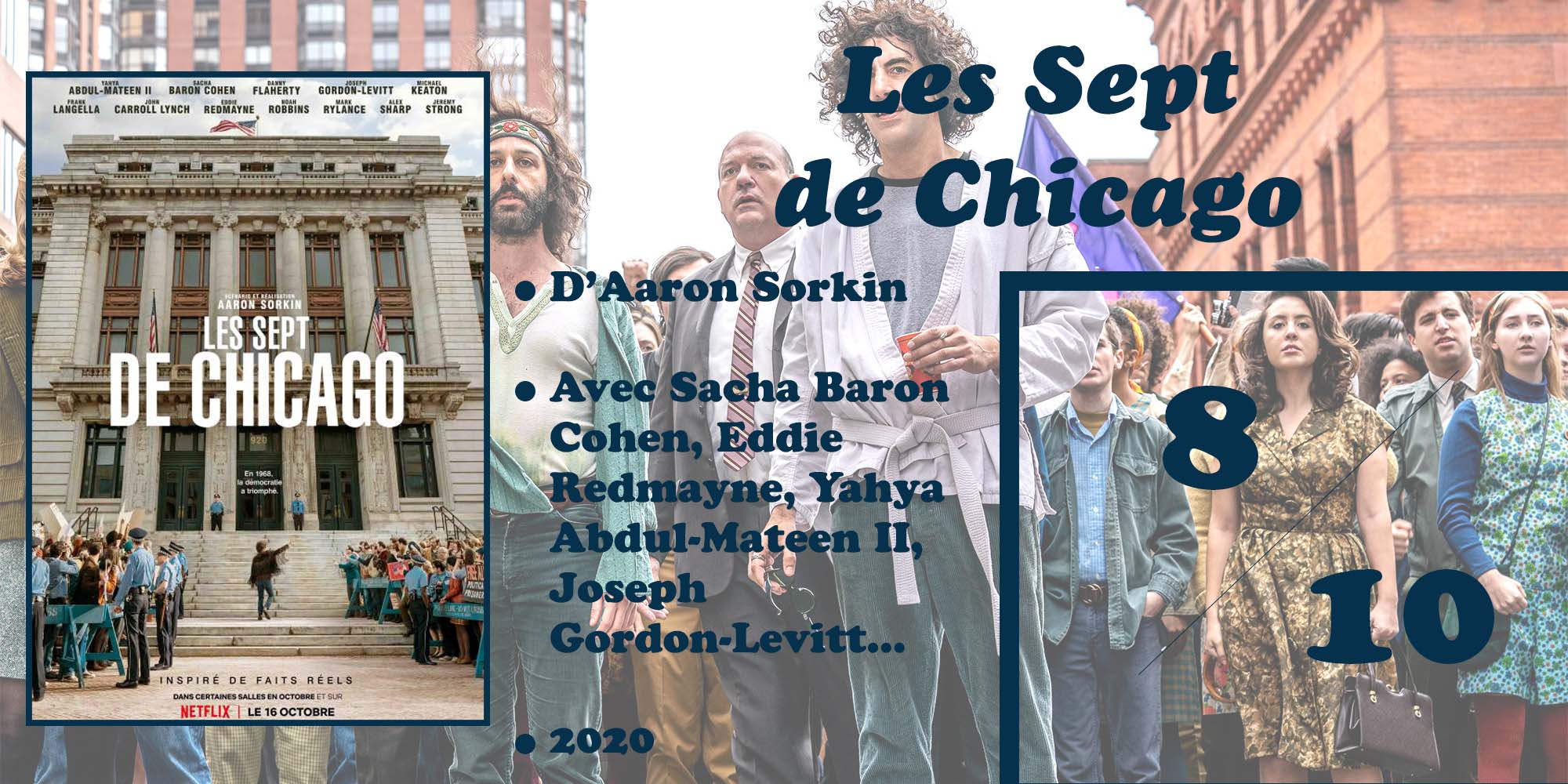 Le pitch : En 1968, Chicago accueille la Convention Nationale Démocrate. Autour de cet événement politique majeur se rassemblent divers mouvements de protestation portés par plusieurs figures contestataires de l’époque telles que Tom Hayden (E. Redmayne) ou Abbie Hoffman (S. Baron Cohen). Rapidement, les esprits s’échauffent et des émeutes éclatent. S’en suit un long procès où les différents leaders identifiés de ces mouvements protestataires seront mis sur le banc des accusés.
