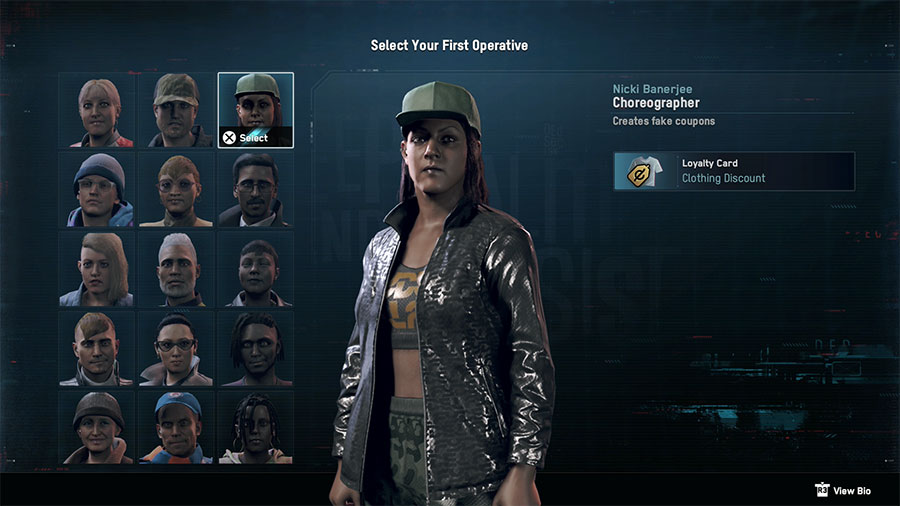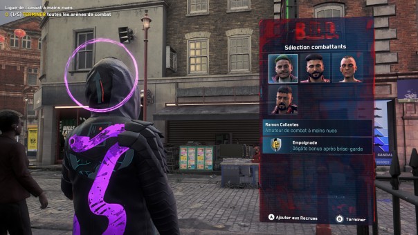 Le fait est en tous cas qu’avec un contexte de jeu pareil, on est en droit d’espérer des personnages qui sachent nous emmener avec eux dans leur lutte, grâce à une caractérisation marquée et des personnalités fortes qui viendront souligner toute la gravité de la situation. Seulement voilà, Watch Dogs 3 repose sur un postulat assez tranché lui aussi : on n’a pas de personnage principal à incarner. Que je me fasse comprendre pour celles et ceux qui ne sauraient pas de quoi il en retourne : Ubisoft ne propose pas ici un personnage qui serait le héros ou l’héroïne du jeu à l’instar d’Aiden ou de Marcus précédemment, un protagoniste qui serait notre avatar du début de l’aventure jusqu’à son terme. C’est d’ailleurs la proposition de game design la plus forte de ce titre, où l’on pourra tout bonnement jouer avec n’importe quel personnage présent dans le jeu. Legion propose en effet la possibilité de recruter le moindre PNJ aperçu dans la ville, moyennant une série de missions à accomplir pour les inciter à rejoindre la cause. De personnage non jouable, l’individu choisi devient personnage tout court et s’intègre par conséquent dans l’intégralité du récit et du game design.