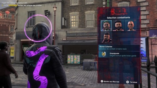 Car après la vendetta personnelle du premier puis la petite rébellion fun du 2, c’est dans une contexte dystopique que nous plonge cet opus-là. Le jeu prend en effet place à Londres donc mais dans un futur proche où le modernisme touche à son paroxysme et ses dérives avec. Le titre s’ouvre d’ailleurs sur un attentat de grande ampleur qui justifiera ensuite la présence de factions armées d’une milice privée nommée Albion dans les rues de la capitale britannique. Qu’il est loin l’esprit décoincé de la petite bande de hackers de San Francisco ! Ici, le jeu propose une ambiance bien plus lourde avec cette espèce de proto-dictature légèrement saupoudrée de cyberpunk. Des gens sont morts et des gens vont mourir tandis que d’autres sont sans cesse soumis à la poigne de fer dans laquelle Albion tient la ville. On n’est plus là pour rigoler et les angoisses du premier volet (qui avaient été bien vite mises au second plan par cette tête de mule d’Aiden Pearce) ressurgissent plus violemment que jamais dans Legion. La proposition tranche donc du tout au tout par rapport au précédent épisode de la série et il faudra réussir à s’y faire car derrière le côté « fun et coloré » mis en avant autour du jeu par les visuels promotionnels (notamment avec les masques et cette esthétique fluo), ce dernier n’est franchement pas drôle dans son essence-même.