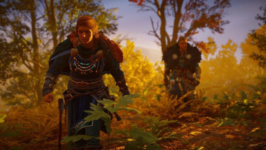 Si ce n’est sûrement pas le plus grand personnage de la série, il faut bien admettre qu’elle se défend pas mal. Bien sûr, on est loin d’un Ezio ou d’un Edward Kenway – qui resteront encore et toujours les mètres-étalons du charisme dans cette saga – mais il n’en demeure pas moins qu’Eivor a du panache malgré tout. Bien que rendue parfois un peu « froide » par des animations qui le sont tout autant et un doublage à revoir, la viking est un protagoniste très intéressant à suivre, en particulier dans son rapport aux autres, qu’il s’agisse de son frère de clan Sigurd ou bien de Basim et Hytham, les deux Assassins qui les rejoignent en tout début d’aventure.