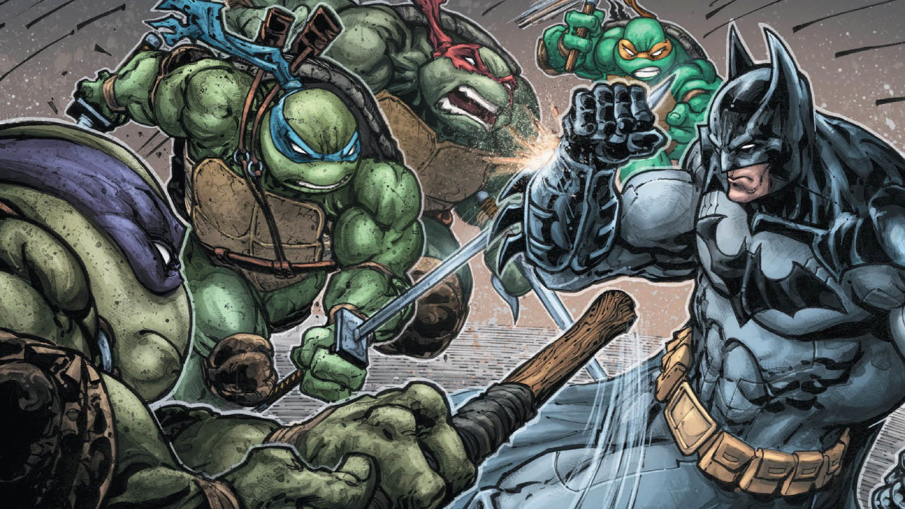 Difficile de résister, lorsque j’ai appris son existence, à l’appel de cette nouvelle série de bandes-dessinées. Mêlant les univers de l’Homme Chauve-Souris et des tortues les plus célèbres du monde, Batman & les Tortues Ninja titille dès son seul titre toute une partie de mon enfance, celle où j’attendais le dimanche soir pour regarder la série animée Batman sur France 3 quand je n’étais pas en train de m’extasier devant Les Tortues Ninja, également proposées sur la même chaîne. Je me fais d’ailleurs la réflexion, presque 30 ans plus tard, que malgré l’image de « télé pour vieux » qui colle encore et toujours à la troisième chaîne, c’est bien France 3 qui aura été un fondement essentiel de mes divertissements d’enfants : entre Batman, les tortues et les inénarrables Minikeums, j’aurais été bien plus bercé par France 3 que par le Club Dorothée sur TF1 par exemple. Enfin bref, passons sur cet élan de nostalgie et revenons-en à notre sujet.