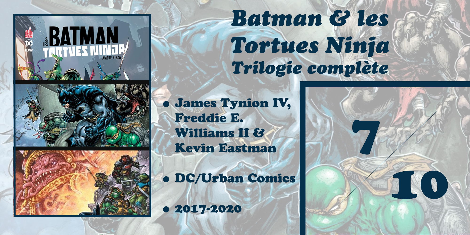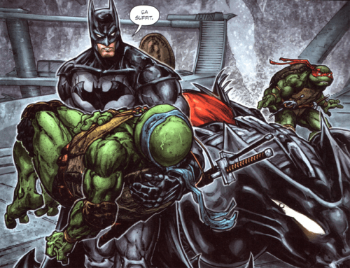 J’en termine donc avec ce papier sur un aspect un peu plus faible que le reste pour cette trilogie mais cela n’enlève rien à la qualité du moment que j’ai passé à en tourner les pages. En dépit du manque d’aboutissement que je viens de mentionner, James Tynion et Freddie E. Williams ont su composer une petite saga des plus sympathiques. Au plaisir d’observer la cohabitation temporaire de tous ces personnages – avec tout ce que cela implique d’humour et d’action – s’est ainsi mêlé celui d’avoir droit à un début de réflexion sur ces derniers. On sent à la lecture de ces trois tomes que ce crossover n’est pas vain et je pense sincèrement qu’il ne vieillira pas si mal en comparaison d’autres bien plus opportunistes. Enfin, que vous soyez fans de Batman, des Tortues Ninja, des deux séries ou que vous n’y connaissiez rien, je pense que chacun(e) y trouvera son compte ici. Et si vous aussi vous regardiez ces dessins animés assis dans une corbeille à linge avec votre nounours, aucun doute que la magie opérera sans même se forcer.