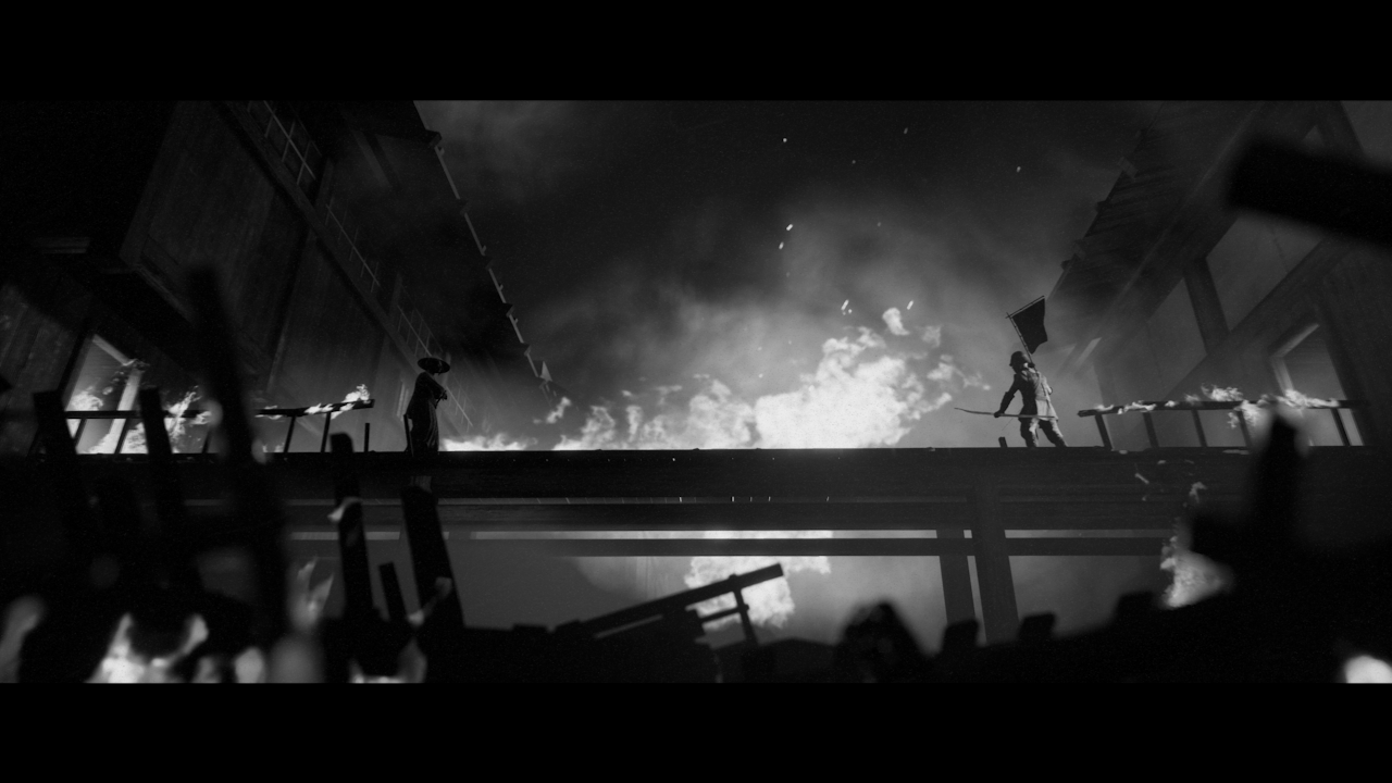 Trek to Yomi semble donc dès le début de son histoire s’inscrire dans le direct héritage d’Akira Kurosawa. Difficile en effet, au-delà des seules références visuelles et des emprunts purement cinématographiques, de ne pas voir également une ressemblance certaine entre Hiroki et les personnages que le cinéaste mettait en scène, si souvent dans la peau de Toshirō Mifune justement. Abrupt, pour ne pas dire brutal, froid et semblant avoir un véritable cœur de pierre (en tous cas au début du récit), notre héros – ou plutôt anti-héros – ne manque pas de ce panache que Mifune conférait à ses propres incarnations à l’écran. On se demandera cependant dans quelle mesure Trek to Yomi arrive ou non à se détacher de l’ombre du réalisateur japonais et de son acteur fétiche.