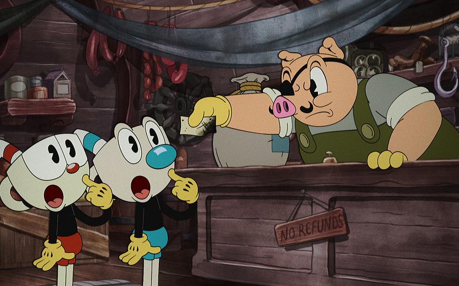 Et c’est très exactement là, sur ce point précis, que le Cuphead Show réussit son pari. En ne cherchant pas à faire du jeu une série mais en valorisant plutôt son univers et en l’adaptant à un nouveau format. Nulle question pour les équipes derrière ces trois saisons de proposer quelque chose qui se rapproche autant que possible de Cuphead : il faut « simplement » construire autour. Creuser du côté de l’état d’esprit, du ton, du propos, voire du récit que le jeu lui-même venait instaurer. L’objectif n’est pas de décalquer mais bien de développer. C’était par exemple ce que tentait de faire – sans grand succès – le film Assassin’s Creed, surfant en cela sur les ambitions transmédia de la licence d’Ubisoft. Et c’est ce que font les récentes productions animées gravitant autour du Cyberpunk 2077 de CD Projekt.