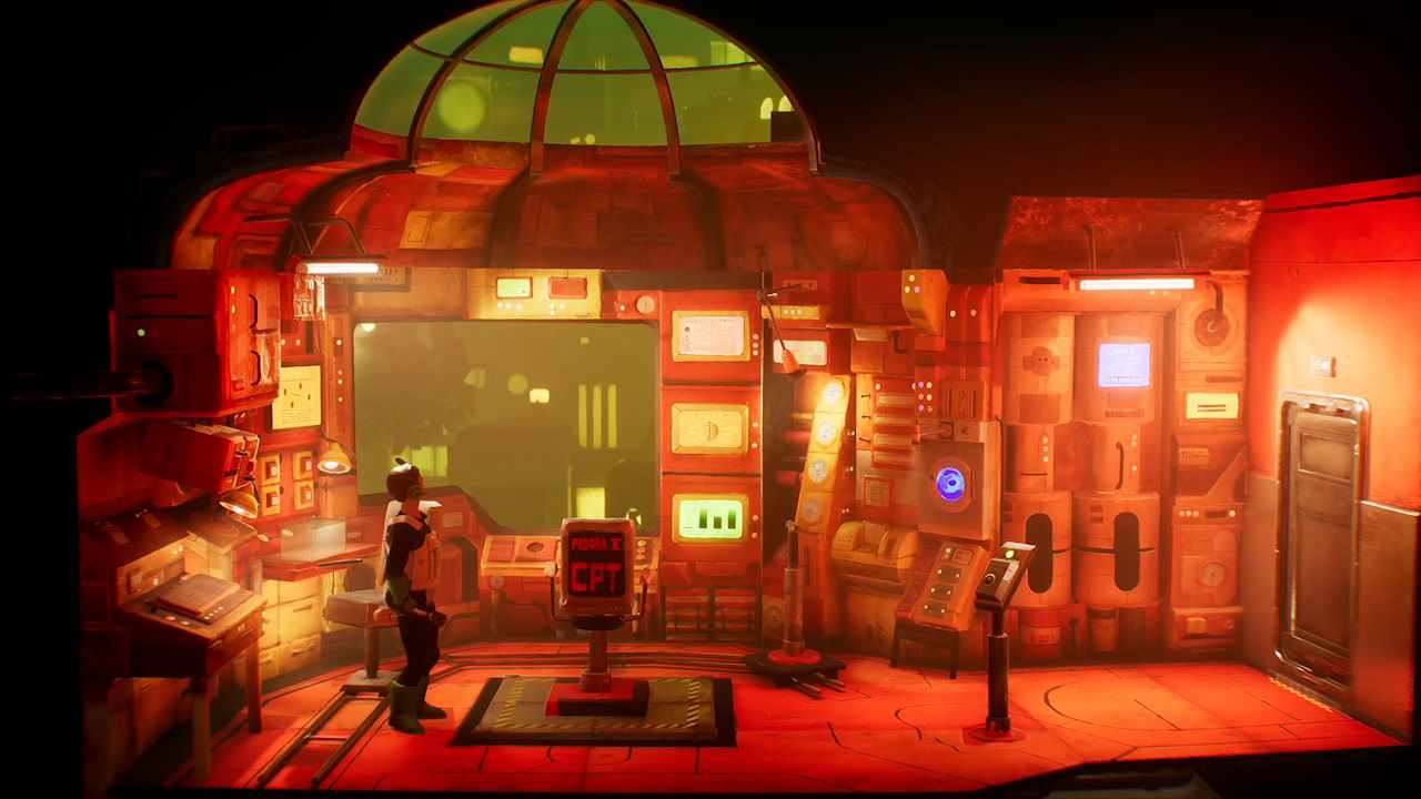 Et il est indéniable qu’avec Harold Halibut, on « joue » peu. Avec le recul, force est de constater que la palette d’interactions proposées est minime. Construit autour de très nombreux allers-retours au sein de la station où se déroule cette histoire, l’on passera en définitive le plus clair de notre temps à arpenter cette dernière, à en traverser les couloirs de long en large et à en emprunter le réseau tubulaire qui relie les différentes zones accessibles. Le plus frustrant, peut-être, sera finalement que ces nombreuses déambulations ne mèneront la plupart du temps (systématiquement en vérité) qu’à des dialogues, parfois assez longs. De personnage d’un jeu vidéo, avec tout ce que cela peut représenter dans l’inconscient collectif en matière d’actions à réaliser, Harold devient finalement plus un agent de progression de l’intrigue, reliant de fil en aiguille les différentes péripéties par ses voyages dans la station. Ainsi, la majorité des quêtes ne seront que des prétextes parmi d’autres pour aller rencontrer tel ou tel personnage et déclencher un dialogue qui en amènera un autre, puis un autre et ainsi de suite.