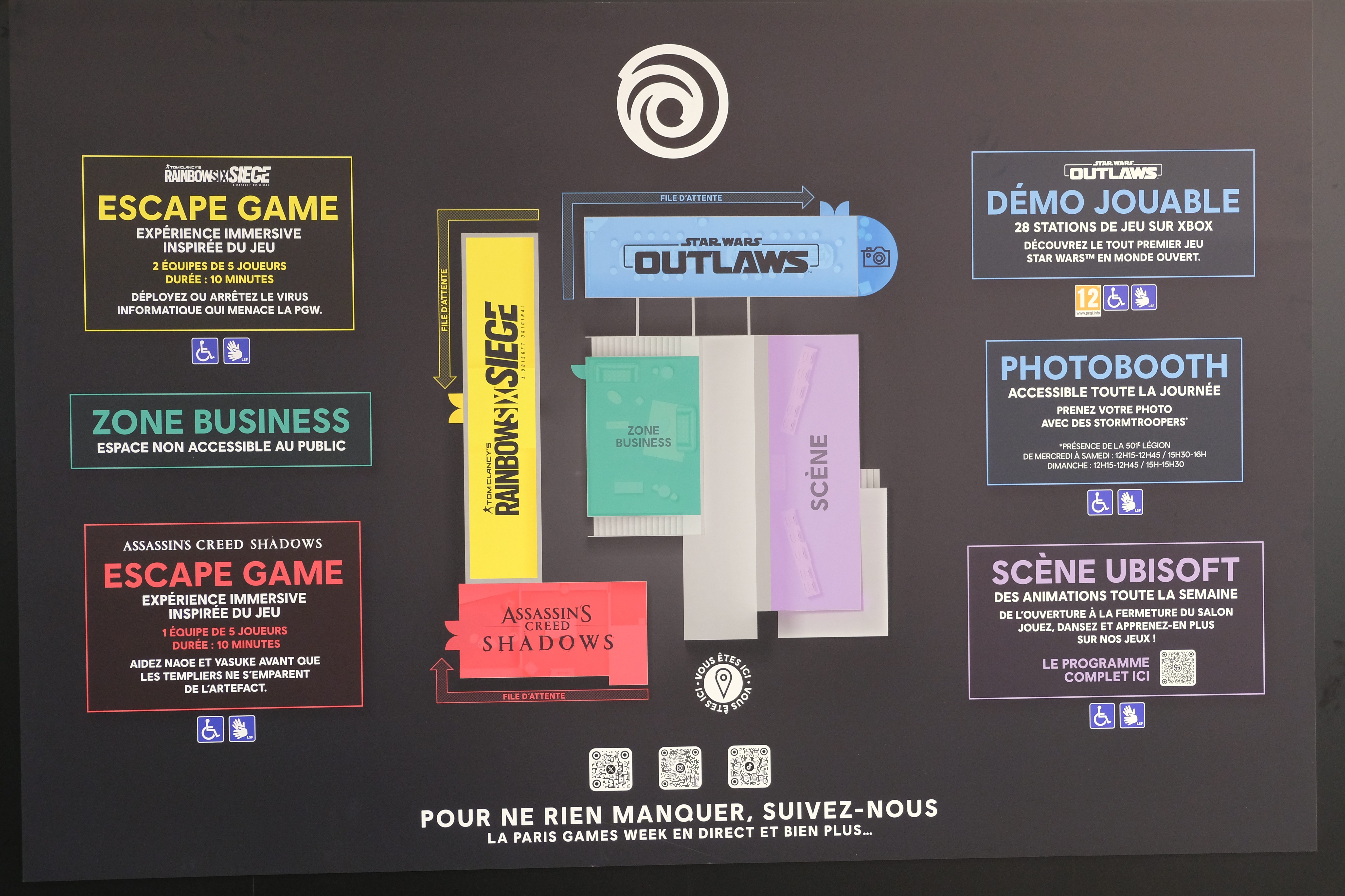 Et que dire d’Ubisoft, qui était venu en tout et pour tout avec un seul jeu à faire tester ? En effet, ne disposant que d’une démo d’un Star Wars Outlaws déjà sorti depuis la fin du mois d’Août (!), Ubi n’avait rien à montrer. Le report récent d’Assassin’s Creed Shadows aura d’ailleurs peut-être perturbé les plans de l’éditeur mais, tout de même, on aurait pu s’attendre à ce qu’il vienne avec quelque chose de plus que la démo d’un titre sorti depuis trois mois et deux escape games aux couleurs d’Assassin’s Creed et de Rainbow Six…