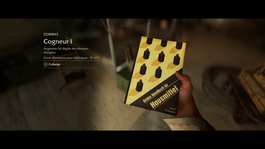 On ajoutera même à cela les différentes capacités que l’on peut débloquer pour « améliorer Indiana » au cours de l’aventure. Débarrassé de la notion d’arbre de compétences, le jeu repose plutôt sur l’acquisition de livres permettant d’accorder des upgrades à notre archéologue (meilleurs capacités offensives ou défensives, amélioration de la santé et de l’endurance, augmentation du port d’objets…). Or, ces livres ne sont pas forcément mis sous notre nez, ils nécessitent de fouiller, parfois aussi de les échanger contre des collectables et, sur le long terme, il est tout à fait possible de s’imaginer que deux joueurs distincts n’auront pas acquis les mêmes compétences, moins par choix que par mise à disposition de ces dernières.