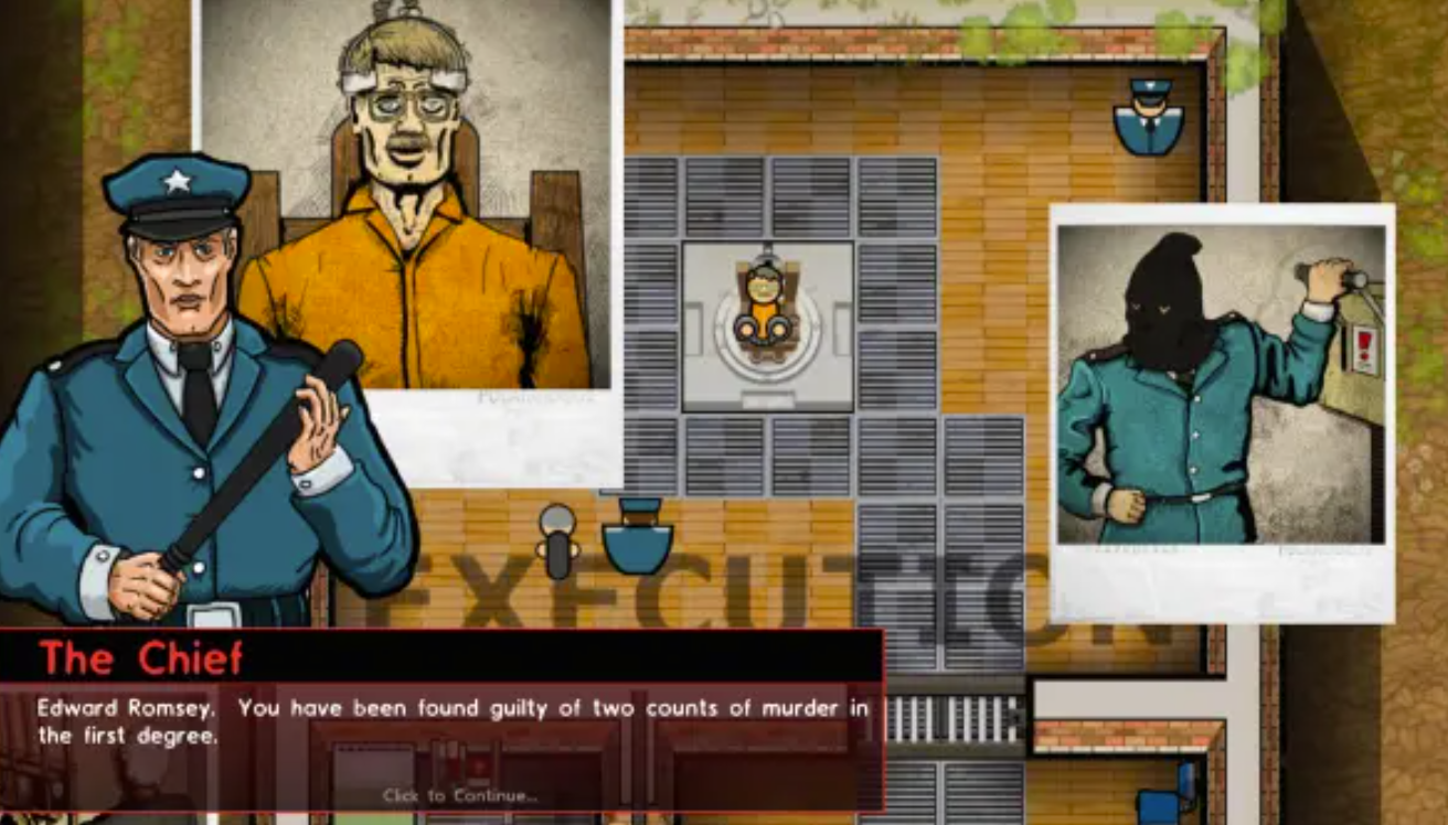 De la même manière, un titre comme Prison Architect réussira à reprendre ce système de jeu, à l’importer dans l’univers carcéral (plutôt inscrit à droite, en résonnance avec les thèmes de l’ordre, de la sécurité et de la répression) et à livrer malgré tout une substance sous-jacente qui saura nuancer l’approche. Car le premier contact avec Prison Architect est difficile, brutal même. La première chose à faire dans le jeu est en effet de bâtir la salle où sera installée la chaise électrique afin d’y envoyer un condamné à mort. Pour autant, le titre d’Introversion Software et Double Fine n’est pas là seulement pour vous faire jouer le rôle du meilleur geôlier possible.
