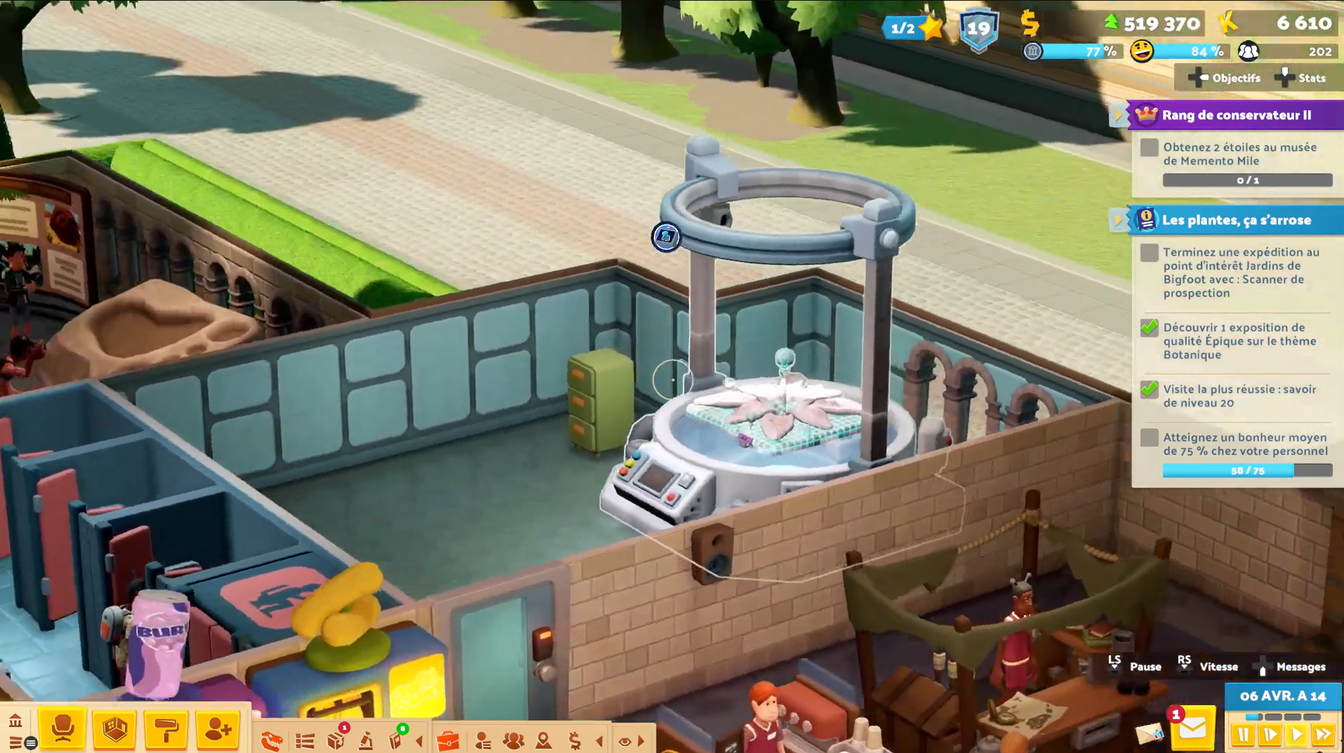 Two Point Studios donne donc le sentiment d’avoir cherché à transposer sa vision du travail dans ses jeux, le tout en perfectionnant ce fonctionnement au fur et à mesure des épisodes (le tout était un peu plus rigide dans Two Point Hospital à mon sens). Cela expliquerait donc aisément pourquoi le bien-être des personnels dans Museum et les autres itérations de la licence constitue comme je le disais un tel levier d’efficacité et donc de réussite en ce qui concerne les objectifs à atteindre en jeu.