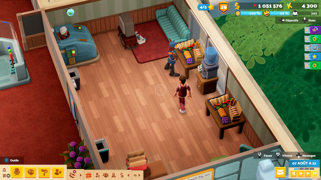 Disponibles sur consoles, les jeux Two Point font en effet l’objet d’une attention particulière en termes d’ergonomie. S’il semblera toujours que la pratique de ces titres sur PC sera sans doute la plus confortable, il n’en demeure pas moins que sur Xbox comme sur Switch (pour ce dont je peux vous parler), l’affaire n’a pas à rougir. Globalement, les interfaces sont les mêmes entre les versions PC et consoles de ces jeux. Les menus ne changent pas, les sous-menus non plus, tout est proposé d’une manière sensiblement similaire.