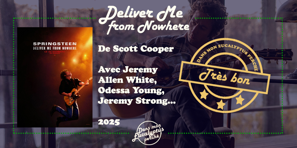 Je crois pour finir que Deliver Me from Nowhere est un film étonnant. Biopic malgré tout, se frottant à une certaine forme de classicisme dans l’exercice, lequel repose ici sur une poignée de clichés et de mécaniques huilées, de séquences attendues, le film de Scott Cooper tente tout de même de faire preuve d’originalité, d’un pas de côté, à défaut d’une véritable audace. Conscient du carcan dans lequel il se classe fatalement en dépit de sa bonne volonté, il l’est également du sujet qui est le sien et de tout ce qui gravite autour. Il réussit alors à saisir cette occasion pour se concentrer sur cela et presque exclusivement sur cela, pour dépeindre le malaise d’un homme, ses erreurs et ses efforts pour avancer, pour nous raconter le pourquoi plutôt que le qui et le comment.